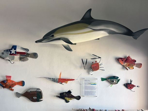 The hotel features a spacious seaside restaurant, a private stretch of beach for guests, a large parking area, and several indoor common spaces including a billiards room and a small library.
